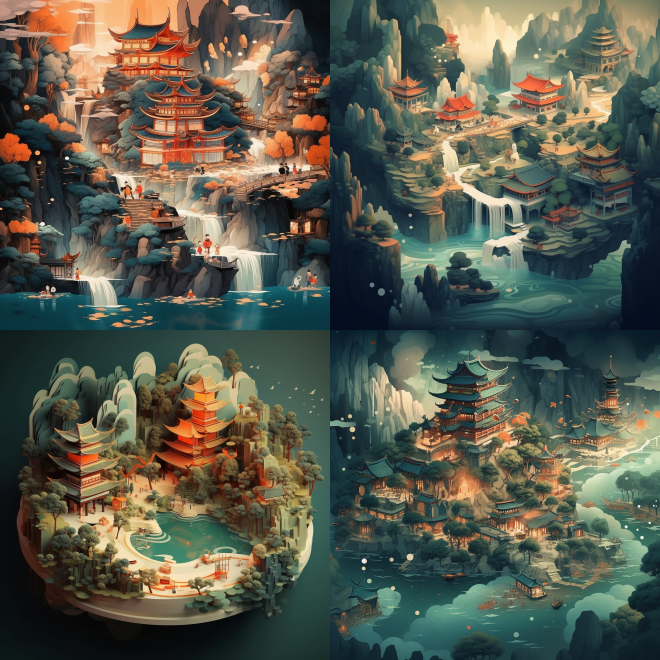 fallen leaves in autumn, blooming flowers in February, crossing the river with thousand-feet waves, entering the bamboo forest with slanting stems:: Cellulose::1 Moonlight::1 DSLR::1 Yayoi Kusama::1 Matte Black Color::1 Brick::1 --ar 1:1 --v 5.1