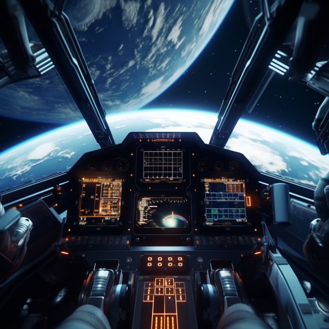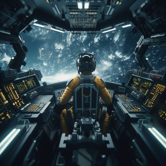 Create: Astronaut, control panel operation, spaceship cockpit; Resolution: 4K (3840x2160 pixels) or higher Encoding format: H.264 or H.265 Bitrate: 30-60 Mbps Frame rate: 24/30/60 fps Color depth: 10-bit Color space: Rec. 709 or Rec. 2020 High Dynamic Range (HDR): Optional, but can improve image quality.