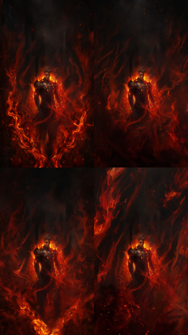 a hero is held behind a fiery backdrop, in the style of crimson and bronze, photorealistic detail, piles/stacks, queencore, skeletal, kingcore, dansaekhwa --ar 9:16