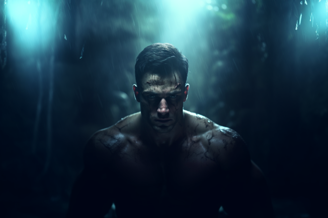 /imagine prompt: Centaur, handsome face, muscular, rich facial details, large panorama, horror atmosphere, environment background, full body composition, art style, low light, film quality, 16k:: --ar 3:2 --v 5.1