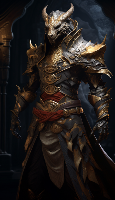 the male character has a pose of a dragon, in the style of dark indigo and light gold, yombe art, dark gold and light crimson, detailed costumes, firecore, dark gold and white, mannerist style --ar 4:7