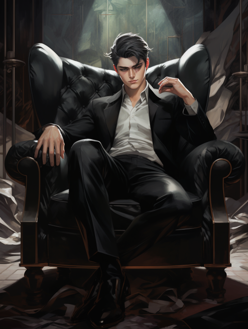 a man on a black chair with shoes, in the style of [artgerm](https://goo.gl/search?artist%20artgerm), charming anime characters, [zeng chuangxing](https://goo.gl/search?artist%20zeng%20chuangxing), elegantly formal, [ross tran](https://goo.gl/search?artist%20ross%20tran), crisp and clean look, detailed costumes --ar 58:77