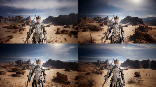 a warrior with swords standing on the ground, in the style of dreamlike fantasy creatures, unreal engine 5, light gray and silver, [xu beihong](https://goo.gl/search?artist%20xu%20beihong), detailed facial features, close-up intensity, bold and energetic --ar 9:5