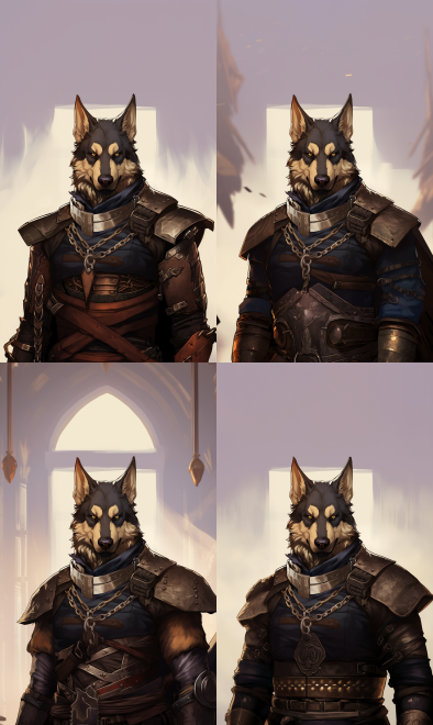 handsome dog head male character,German Shepherd dog,He is tall, broad and very muscular,eight pack abs, with eye patch, leather necklace, delicate face, handsome and attractive, in the style of [akihiko yoshida](https://goo.gl/search?artist%20akihiko%20yoshida), heroic masculinity, gigantic scale, light white and dark gold, [yanjun cheng](https://goo.gl/search?artist%20yanjun%20cheng), [joe madureira](https://goo.gl/search?artist%20joe%20madureira), flickr --ar 3:5