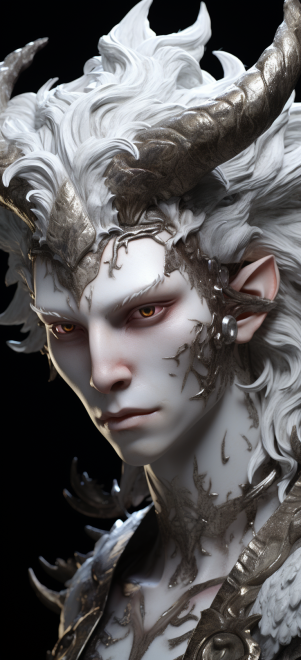 Satyr,in the style of dreamlike fantasy creatures, unreal engine 5, light gray and silver, [xu beihong](https://goo.gl/search?artist%20xu%20beihong), detailed facial features, close-up intensity, bold and energetic --ar 5:11 --ar 5:11
