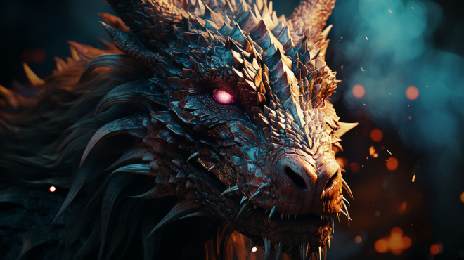 /imagine prompt: An award-winning photograph of a majestic dragon with shimmering scales of iridescent blues and purples in a foreboding volcanic landscape, caught in the midst of an epic battle with knights clad in shining armor under the harsh light of a blood-red sunset. The dramatic lighting casts long, dark shadows across the scene, emphasizing the dragon's massive size compared to the tiny, courageous humans challenging it, their metallic armors glinting ominously. The image perfectly captures the tension and chaos of the fantastical scenario, making the viewer almost hear the clash of steel against the dragon's tough scales. Advanced composition techniques like depth of field and rule of thirds have been employed to guide the viewer's eye to the relentless confrontation at the center of the frame. The photographic quality is enhanced by digital post-processing tools creating a visually stunning spectacle in insanely high resolution, realistic, 8k, HD, HDR, XDR, focus + sharpen + wide-angle 8K resolution + photorealistic + HDR10 Ken Burns effect + Adobe Lightroom + rule-of-thirds + octane render --ar 16:9 --s 1000 --c 70