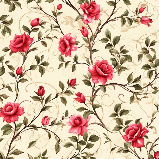 /imagine rose and vine ornaments on off-white background --v 5.1