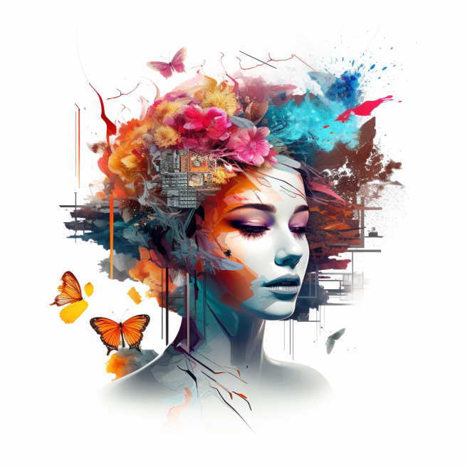 /imagine prompt: a surrealistic style logo, representing the image of digital art, composed of various digital art pieces, award-winning masterpieces. Double exposure, giving people a pleasing and aesthetic feeling