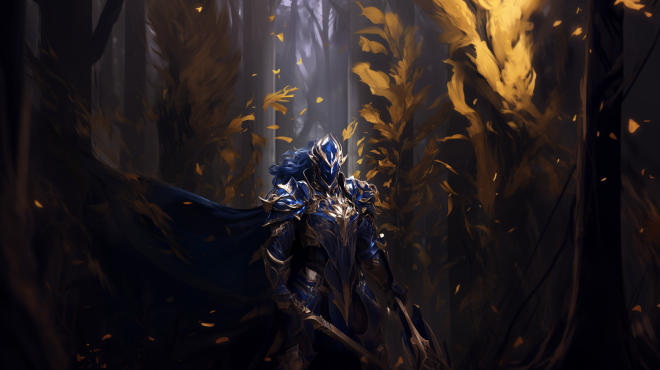 a knight in armour with an arrow in his hand, in the style of dark azure and gold, fluid dynamic brushwork, 32k uhd, [li shuxing](https://goo.gl/search?artist%20li%20shuxing), crystalcore, [loish](https://goo.gl/search?artist%20loish), [even mehl amundsen](https://goo.gl/search?artist%20even%20mehl%20amundsen) --ar 16:9
