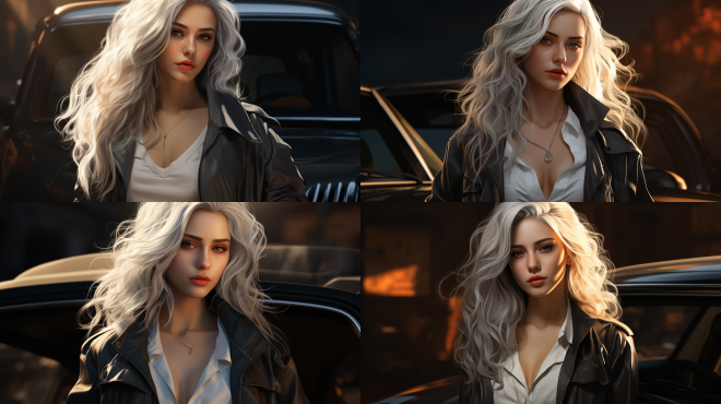 http://www.effecthub.com/disk/3706393/Texture/FBF07CC3-4F25-A6C9-359B-068ED37D799D.png Venara,Beside a jeep, in a detective style, with flowing silver hair --s 400 --ar 16:9