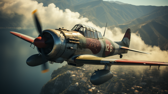 Other Elements: Courageous pilots leading the aerial formation, aerial acrobatics, inspiring battle scenes,unsplash --s 1000 --style raw --ar 16:9 --v 5.2